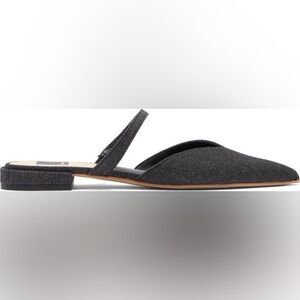 A midfoot strap enhances the streamlined silhouette of a sophisticated mule balanced by a pointy toe and wrapped heel.