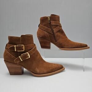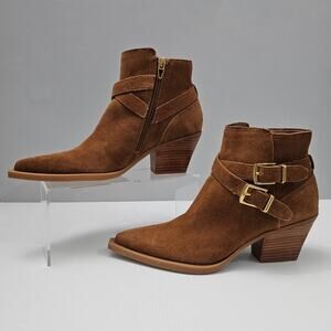 NEW Dolce Vita Rayner Ankle Bootie Womens 7.5 Brown Suede Pointed Toe Heeled