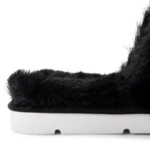NEW Dolce Vita Women Puff Black Faux Fur Two Strap Slide Sandal Slippers