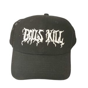 NEW Dolls Kill Black Mesh Trucker Hat Embroidered Logo Snapback Baseball Cap
