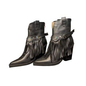 NEW Dolls Kill Simmi Darii Fringe Ankle Boots Women's Sz 8 Black Western Grunge