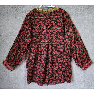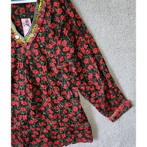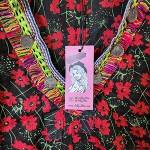 NEW Dolly's D-Lite Custom Long Sleeve V Neck Micro Mini Dress Floral Fringe Sz M