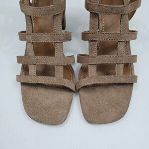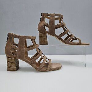 NEW Donald Pliner Poeme Sandal Womens 8 Brown Suede Block Heel Dressy Neutral