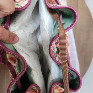 Dooney and Bourke - Lion King Drawstring Purse - New with tags. Add a touch of Disney magic to your wardrobe with this stunning Dooney & Bourke Lion King drawstring purse. The multicolor exterior and green lining make for a beautiful contrast, while the high-quality leather material ensures durability and longevity. This bucket and drawstring bag style is perfect for any occasion and the Disney World product line adds an extra touch of nostalgia to your ensemble. Upgrade your handbag collection with this brand new purse that comes with tags intact. The Dooney & Bourke brand is renowned for its exceptional quality and exquisite designs, and this purse is no exception. Perfect for women who are looking for a stylish and practical accessory that complements their outfit. Don't miss out on this must-have addition to your collection. The purse measures about 11" x 11" x 6/1/2"
