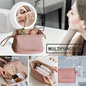 NEW No Tags Double Layer Portable Large Makeup Bag with Compartments Zipper Pouch Travel Cosmetic Organizer - HIKOO well made and beautiful make up bags - self standing double layer travel or home