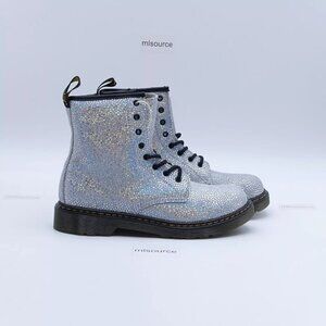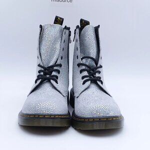 NEW Dr. Martens 1460 Metallic Lace Up Combat Boots Silver Suede