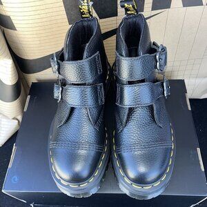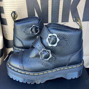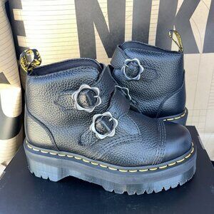 NEW Dr Martens Devon Flower Buckle Black Nappa Leather Platform Boot Women Sz 7