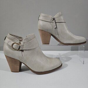 NEW Dr Scholls Kickstart Ankle Bootie Womens 9.5 Taupe Block Heel Buckle Neutral