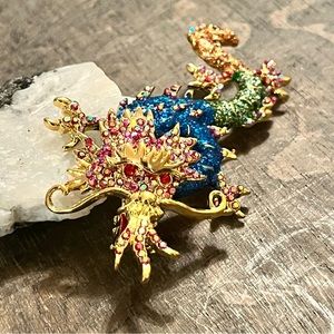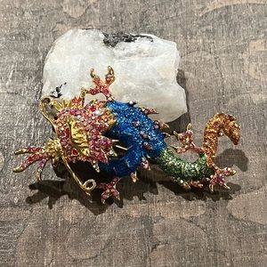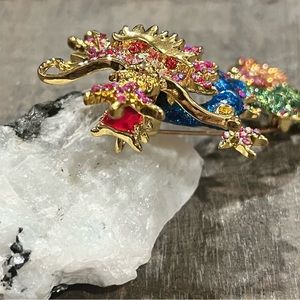 Gorgeous dragon pin. Great piece to celebrate the Chinese Zodiac. Colorful rhinestones. Brand new. Can be worn as a pin or pendant. Beautiful craftsmanship.