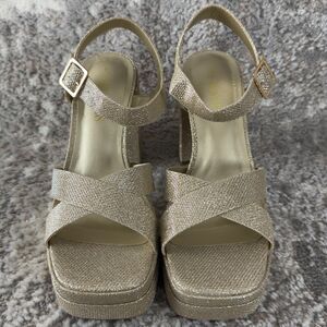 NEW Dream Pairs Sz 9 Square Toe Chunky Heel Platform Sandals Gold Glitter Y2K