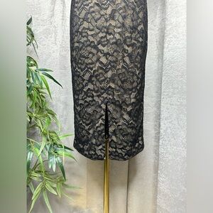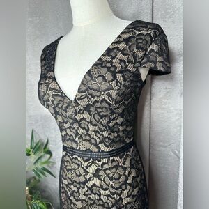 NEW Dress The Population Jaleah Cap Sleeve Faux Wrap Lace Dress in Black Nude S