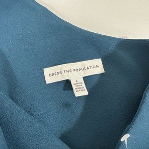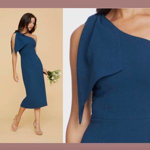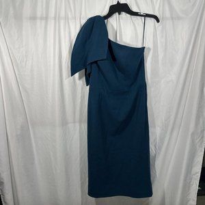 NEW Dress The Population [ Large ] Tiffany One Shoulder Midi Dress Blue #Q386