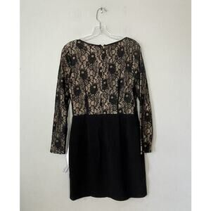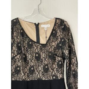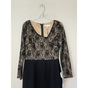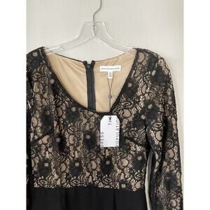 NEW Dress The Population Medium Black Nude Lace Mini Dress Long Sleeve Glam NWT