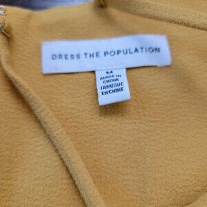 NEW without tags, no flaws, never worn, Dress The Population Mira Mini Dress Ruffle Marigold Women's M MSRP $150. A ruffled hem lends a frilly finishing touch to a figure-skimming party dress in a classic silhouette with adjustable shoulder straps.