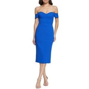 NEW Dress the Population Bailey Off Shoulder Midi Dress in Electric Blue Sz. M
