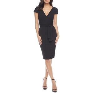NEW Dress the Population Dana Deep V-Neck Sheath Midi Dress in Black Sz. XS
