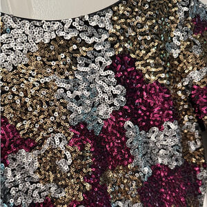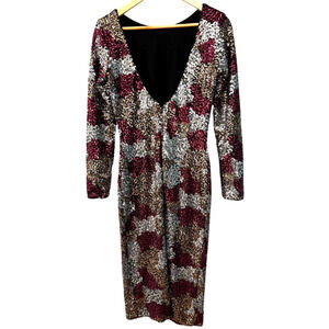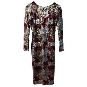 NEW! Dress the Population M Brenna SEQUIN Bodycon Dress Long Sleeve Metallic