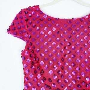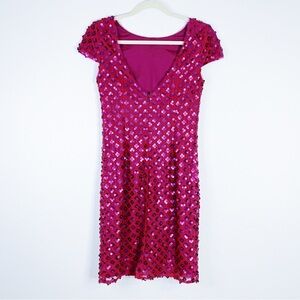 Dress the Population magenta dress. Floral arranged sequins throughout. Zipper at back.