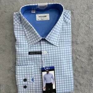 NEW Duchamp Men's 16L Stretch Button Down Dress Shirt Slim Blue Check Pattern
