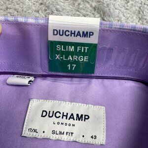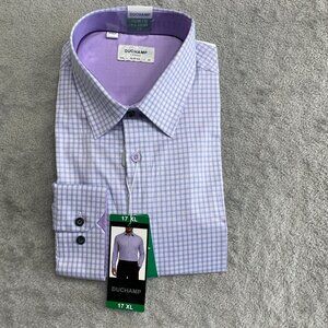 NEW Duchamp Men's 17 XL Slim Fit Dress Shirt Purple Plaid Stretch Cotton