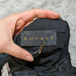 Tailored with a disco-ready flare, Dundas takes the classic halter jumpsuit in for a night out in black lace. Waist cut-out. Back zip closure. Fully lined.