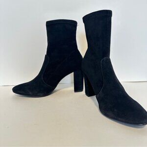 NEW Dune London Opticals Black Suede High Heels Stretch Women's Ankle Bootie S 7