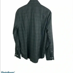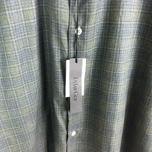 BRAND NEW Dylan Gray Men's size M Olive Green and Blue Plaid Long Sleeve Button-Up Shirt made in Portugal from 100% Cotton .