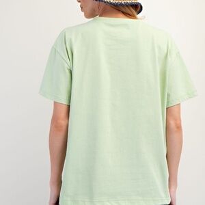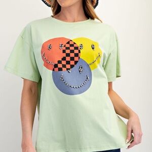 NEW EASEL BEDAZZLED SMILEY FACE COTTON JERSEY KNIT TOP T SHIRT SMALL GREEN