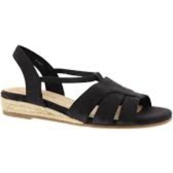 NEW EASY STREET YESENIA WOMEN'S BLACK ESPADRILLE WEDGE SANDALS 8 WW