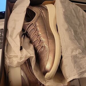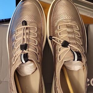 NEW ECCO LEATHER SLIP ON BRONZE GOLD ELEVATED SNEAKERS 10.5 11 11.5 42 NWT