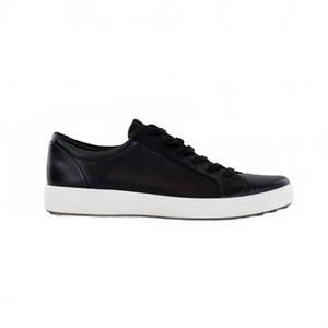 - Description: Meet the ECCO Men's Soft 7 City Sneaker, a minimalist masterpiece in black designed for the active modern man. Tailored from a variety of high-end leathers including smooth and pebbled nubuck or a blend of smooth and perforated mesh leathers, these sneakers promise unparalleled comfort and style. The long-lace closure system offers a customizable fit, while the ultra-soft fabric lining and leather molded insole enhance comfort and breathability. With a dimpled outsole for dependable grip, these flat-heeled sneakers effortlessly transition from a casual day at the office to a dinner party.
