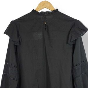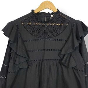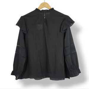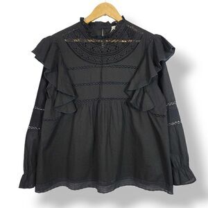 NEW ELAN Jace Ruffle Eyelet Cotton Oversized Blouse in Black Size Medium