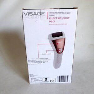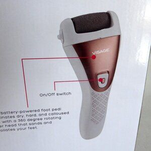New in box, never used for its purpose, Visage brand, “Electric Foot Pedi” dry skin and callous, pedicure exfoliator. It is battery powered. It comes with 2 AA batteries. Comes with 2 difference roller attachments. (See photos for details) I am the original owner. It has been in climate controlled storage. Comes from a pet and smoke free home.