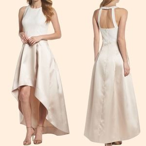 NEW ELIZA J Asymmetrical CHAMPAGNE Two Tone CREPE & MIKADO High Low DRESS GOWN 4