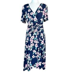 ELIZA J Ditsy Floral Faux Wrap Dress Jersey Knit, size 12 New with tag