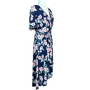 NEW ELIZA J Ditsy Floral Faux Wrap Dress Jersey Knit 12 Surplice Neck Belted