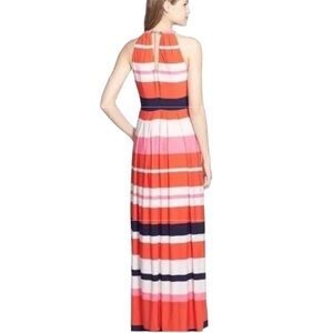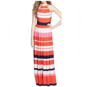 NEW ELIZA J Striped Pleated Halter Maxi Dress Gold Choker Closure Size 10