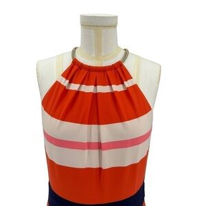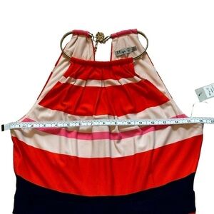 NWT ELIZA J Striped Pleated Halter Maxi Dress Gold Choker Closure Size 10