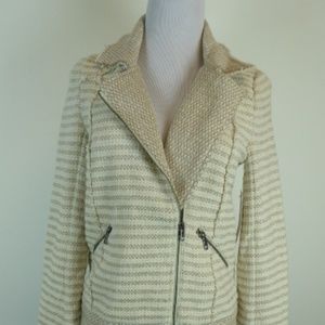 NEW ELLA MOSS BEIGE SALINAS TWEED ZIP moto JACKET