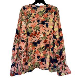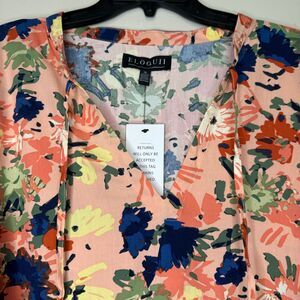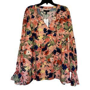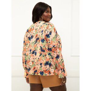 NEW ELOQUII women's plus size 20 soft gathered Yoke floral orange blouse top