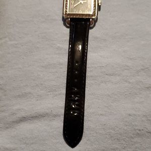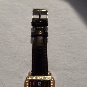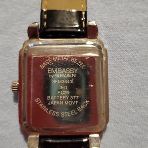 NEW EMBASSY BY GRUEN Colorful Face Rhinestone Cass Black Patent Band Watch