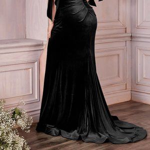 NEW EMERALD LONG MERMAID OFF SHOULDER STRETCH VELVET GOWN WITH SIDE SLIT CD956