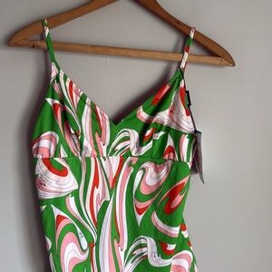 Vortici-print swimsuit from EMILIO PUCCI featuring green, pink, ECONYL®, sweetheart neck, spaghetti straps, open back and stretch-design. Be mindful to try on swimwear over your own garments.. POSITIVELY CONSCIOUS: This Planet Conscious product is crafted from certified recycled or upcycled materials, which helps you make a better choice for the environment as they generate less energy, save water and reduce the need for new raw materials. For recycled synthetic clothing products we highly recommend using a microfibre-catching washing bag to ensure that no microplastics that can pollute water are released in the process..