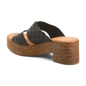 NEW ERIC MICHAEL Made In Spain Leather Royce Heel Sandals black 367tn