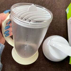 Perfect for mixing, measuring and storing formula. Removable screen helps prevent clumps. Used just once. I stopped using powder formula.