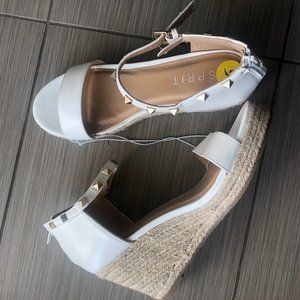 ESPRIT White Studded Sandal Espadrille Wedge brand new!