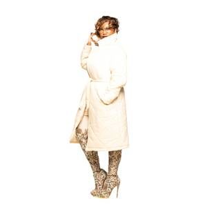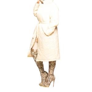 Introducing the Creme Brûlée Jacket by Eternelle, a chic winter essential in a sophisticated beige hue. This women's puffer coat boasts a quilted design with a self-belt for a flattering silhouette. Crafted from 100% polyester, it features long sleeves and a classic collar for added warmth. Closure is elegantly managed with a tie, and practical pockets enhance functionality.