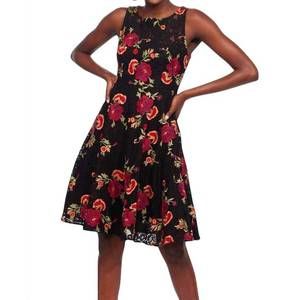 Gorgeous fit and flare sleeveless dress features textured embroidery mesh body with a soft lining. Side zipEmbroideredFit and flare100% Polyester, 100% Polyester liningFully lined