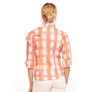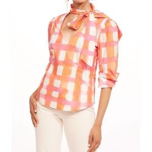 V-neck blouse with front tie detail and cuffed half sleeves. Crafted from cotton and featuring an eye-catching pink and orange plaid. Cotton; Polyester lining. Hand wash warm.