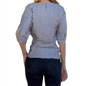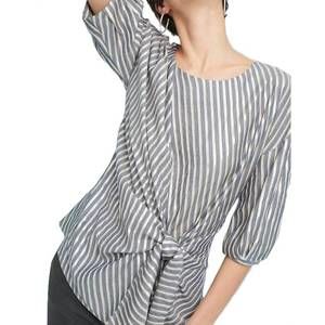 NEW EVA FRANCO yang top front tie blouse in stripe gold lurex
